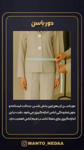 نکته: برای دقت بیشتر، بهتر است هنگام اندازه‌گیری از لباس‌های نازک استفاده کنید و متر را خیلی شل یا خیلی سفت نکشید.
