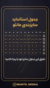 هر برند ممکن است سایزبندی خاص خود را داشته باشد. بنابراین، پس از اندازه‌گیری بدن، حتماً به جدول سایز مانتو ندا مراجعه کنید و سایز خود را با جدول تطبیق دهید. این جدول معمولاً شامل سایزهای S، M، L و XL و معادل آن‌ها در سانتی‌متر است.