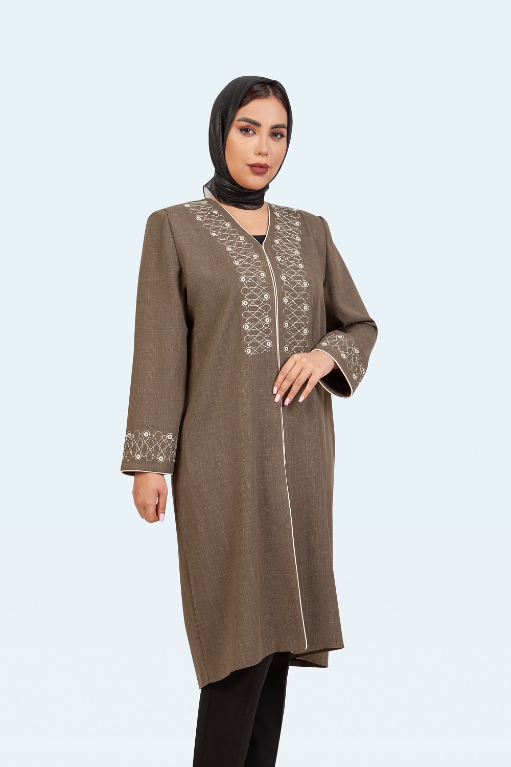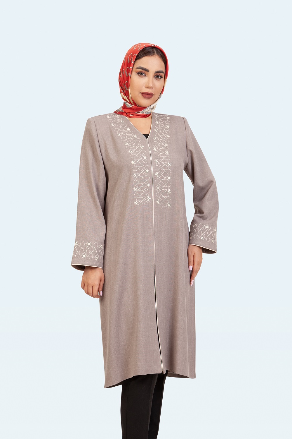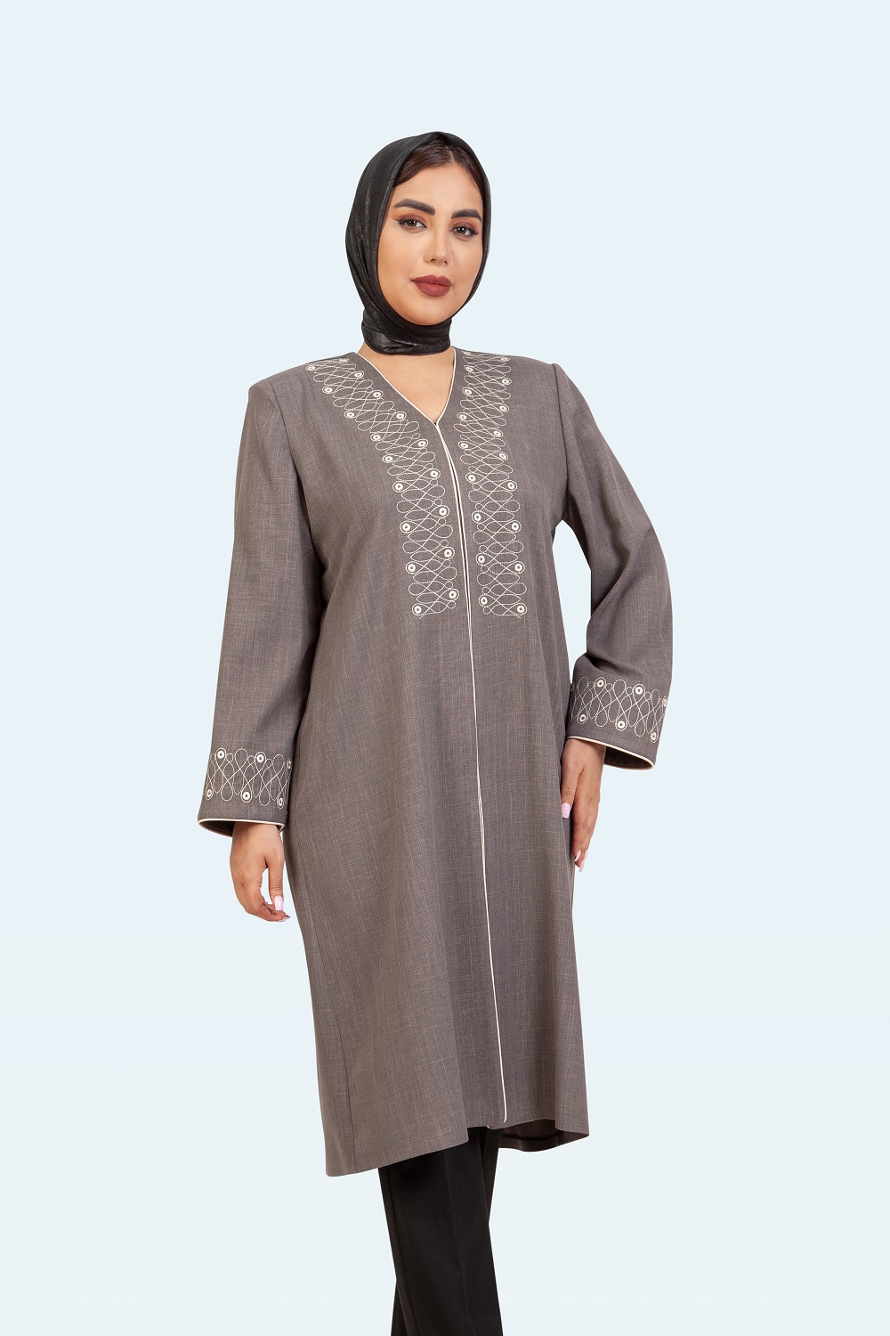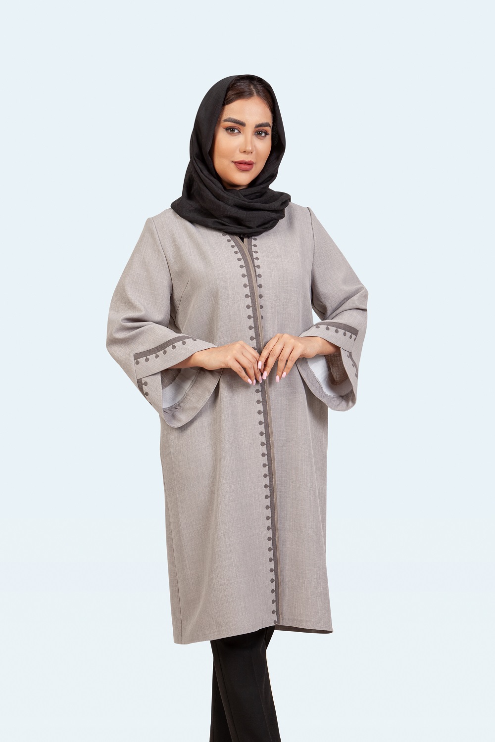 بارانی بلند یقه کاستری نسترن